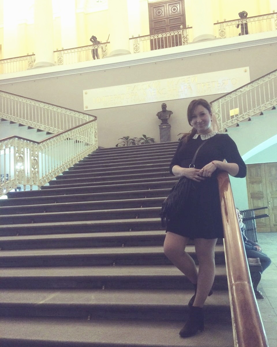 На колоннаде Исакиевского собора тоже была. Помню, как спускалась по этой открытой лестнице, вслух уговаривая себя, что всё будет хорошо. Страха натерпелась на всю жизнь. А ещё я страшно люблю Русский музей, вот прям люблю-не-могу. Помню, в первый мой приход там выставляли Врубеля из запасников, и навсегда теперь Русский для меня связан с любимым художников. А потом как-то приезжала с мамой, она пошла по своим коммандировочным делам, а меня оставила в Русском, чтобы я нагулялась вдоволь. И ещё был дом-музей Блока, в котором я бродила 2 (!) часа, бедная мама. И нам очень нравилось в Гатчине и в Пушкине.